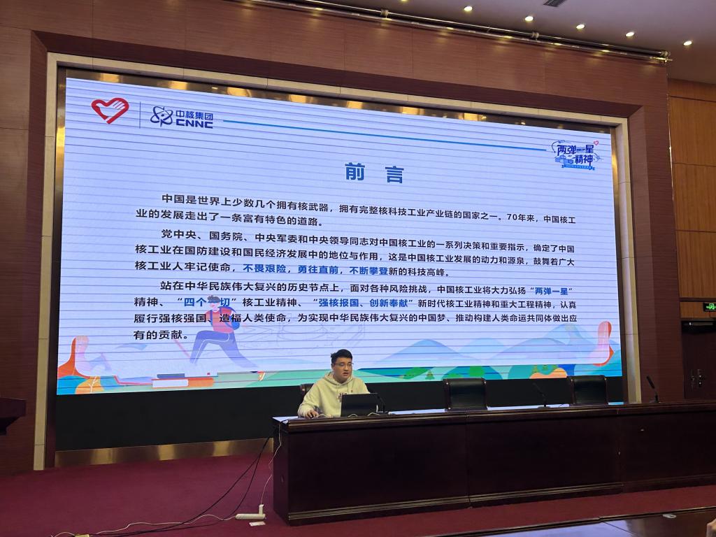 宣讲团聚焦“两弹一星”事业中的英雄模范,深情讲述了王淦昌、郭永怀等科学家的感人事迹。王淦昌隐姓埋名数十载投身核物理研究,以智慧与坚守攻克诸多技术难关;郭永怀在飞机失事瞬间,用身体护住重要科研数据,将生命定格在为国奉献的征程上。一个个鲜活故事、一段段赤诚坚守,让同学们深刻领会到“两弹一星”精神中热爱祖国、无私奉献,自力更生、艰苦奋斗,大力协同、勇于登攀的核心内涵。